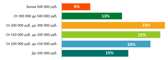 Международная компания Kelly Services опросила сотрудников eCommerce-компаний и кандидатов на соответствующие вакансии. Опрос показал, что заработная плата в этой сфере более 200 000 рублей. Лишь 15% зарабатывают меньше 100 000, а самый высокий показатель, более полумиллиона рублей, получают 6% от всех кандидатов."Можно сделать вывод о благоприятных условиях оплаты труда: 92% респондентов участвуют в бонусной системе, которая чаще всего составляет от 10 до 25% от общего дохода, а у половины кандидатов доход вырос на 25%. Компании предоставляют сотрудникам большой пакет социальных льгот: мобильная связь (50%), внутреннее обучение (49%), а также питание, парковка, бонусы, жилищные программы и путевки", - говорят эксперты Kelly Services.