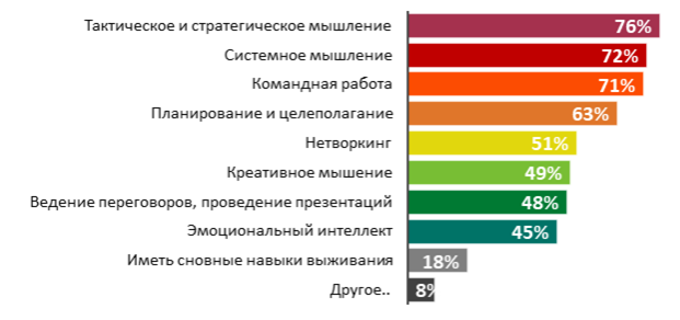 По мнению большинства респондентов Kelly Services, "идеальный эксперт" в сфере digital & eСommerce должен обладать тактическим и стратегическим мышлением – так считают 76% опрошенных. Кроме того, важны уметь работать в команде, системно мыслить и планировать наперед. Также надо всегда быть в тренде и знать о новинках на рынке, адаптироваться к изменениям, обладать базовыми техническими знаниями CMS, ERP, CRM, PIM.
