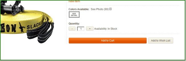 Кнопка принадлежит интернет-магазину Sierratradingpost.com и пример ее использования можно найти на странице любого товара. Её ширина достигает 360 пикселей и у нее оранжевый цвет. Как считаете, этот факт может положительно сказываться на конверсии? :D