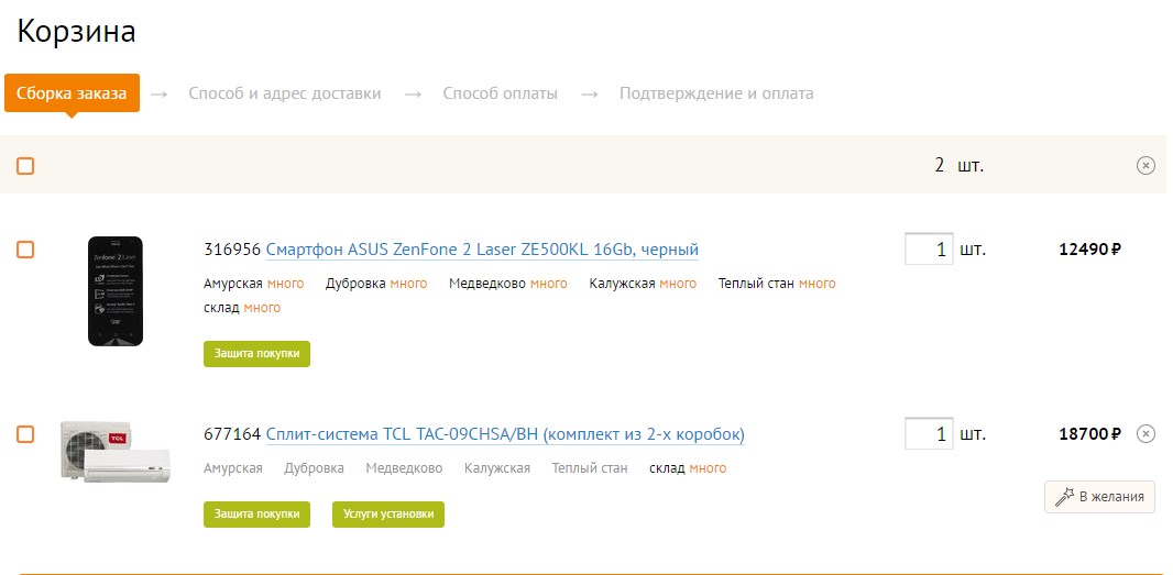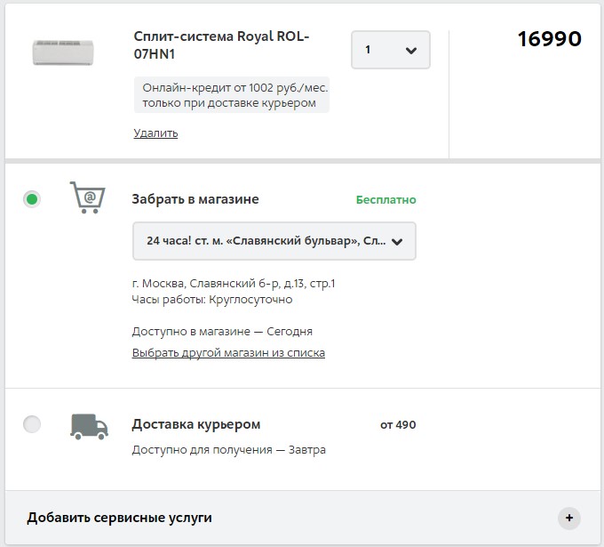 В «Юлмарте» сейчас опции заказа услуги из корзины или карточки нет, все сервисы вынесены в отдельный раздел. Однако руководитель направления «Клиентские сервисы» компании «Юлмарт» Игорь Харченко рассказывает, что перенесение услуг в корзину – это один из «ближайших планов» компании.
