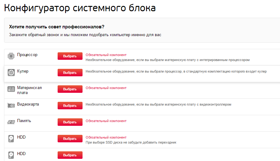 "Эксклюзивным для рынка крупного ретейла является наша услуга оперативной сборки компьютера по конфигурации клиента прямо в торговом зале. Процедура срочной сборки компьютеров прямо в торговом зале центра исполнения заказов или пункта выдачи Юлмарт Outpost занимает не более часа. Спрос на нее остается стабильно высоким, доля в обороте компании этой услуги составляет порядка 5,4%", - рассказывает Харченко. На сайте можно выбрать комплектацию компьютера, чтобы получить потом ее в магазине. Это делается с помощью специального "конфигуратора".