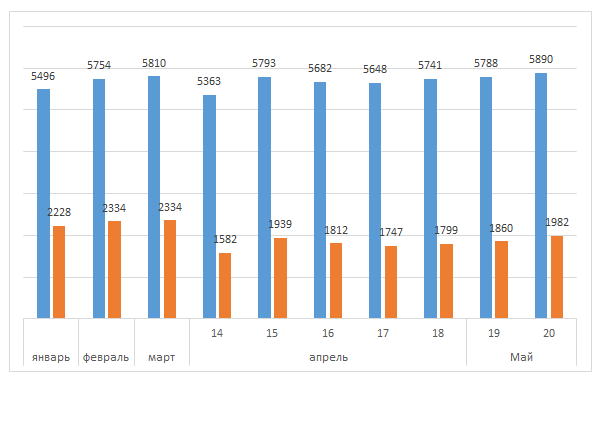 Не смотря на ограничения объема точек, доля трафика онлайн-заказов с доставкой через канал самовывоза была снижена только в первые три недели карантинного периода. Сейчас этот показатель демонстрируем устойчивый рост и уже превышает аналогичный показатель за 2019 год более чем на 50%.
