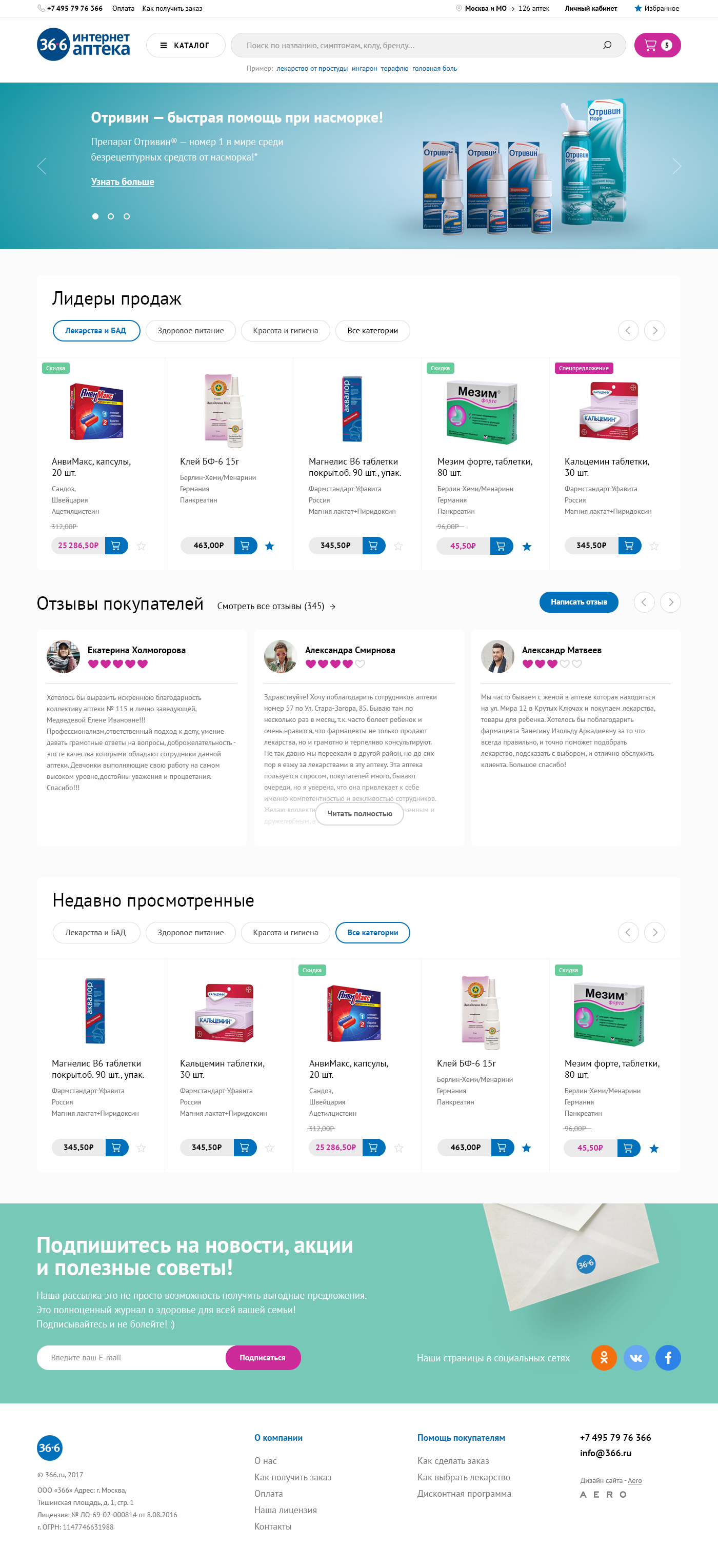 Именно поэтому мы сразу поставили перед собой задачу предоставить пользователям привлекательные цены в Интернет-аптеке 366.ru. При этом, являясь лидером отечественного фармритейла, мы гарантируем клиентам качественный сертифицированный товар и удобный сервис.