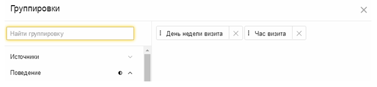 В отчете выбрали следующие «Группировки»