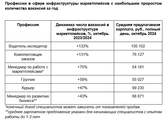 "В 2024 году в сфере инфраструктуры маркетплейсов наблюдается значительный прирост числа вакансий, что отражает развитие логистических и операционных процессов на крупных онлайн-платформах. Компании активно конкурируют с офлайн-ретейлом, улучшают условия труда для соискателей и уже работающих специалистов. Это создает стабильные рабочие места с конкурентоспособными зарплатами и способствует дальнейшему расширению отрасли", - комментирует Роман Губанов, директор по развитию Авито Работы.