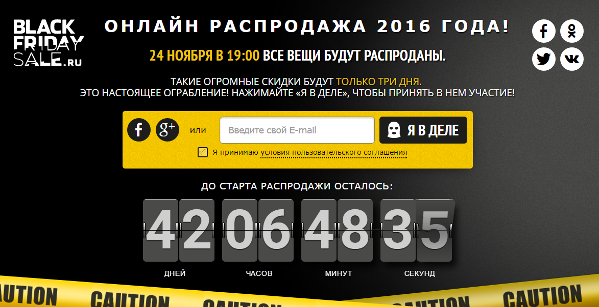 Единственный "живой" и обновленный конкурент из упомянутых - сайт "черная-пятница-в-россии.рф", однако его дизайн ничего общего с "Блэк Фрайдэй" не имеет.