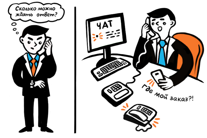 В отделе продаж злоупотреблять данной функцией не стоит: конкуренция велика. Если клиент при первом обращении услышит, что его просят подождать на линии, он, вероятнее всего, уйдет к конкуренту, где трубку возьмут быстрее. А вот в службе доставки или сервисном центре — это реальная возможность позаботиться о клиенте.