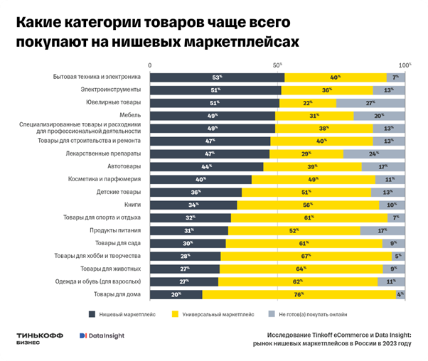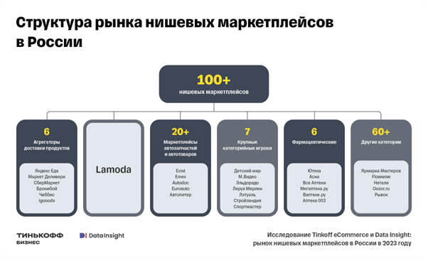Tinkoff eCommerce и аналитическое агентство Data Insight провели совместное исследование и проанализировали рынок нишевых маркетплейсов в России - онлайн-площадок, объединяющих продавцов товаров одной категории.
