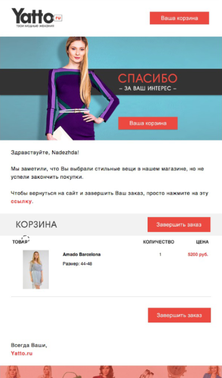 Речь пойдет только о рассылке по брошенным корзинам. Рекламные рассылки со специальными предложениями и акциями без связи с брошенной корзиной – отдельная тема.