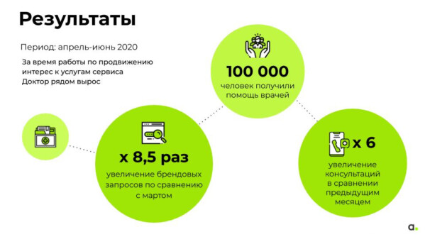 Продвижение шло по множеству каналов: контекстная и таргетированная реклама, видеопродвижение, работа с лидерами мнений. С апреля по июнь 2020 года вырос интерес к услугам сервиса, говорится в кейсе. За это время провели более 100 000 консультаций, а число брендовых запросов увеличилось в 8,5 раз.