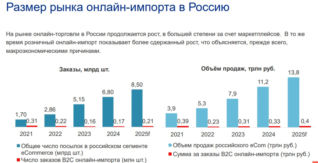 Как и годом ранее, 98% всех отправлений пришлось на Китай. В середине 2024 года возникли сложности с оплатой китайских товаров, что замедлило рост рынка. Однако к концу года ситуация нормализовалась.