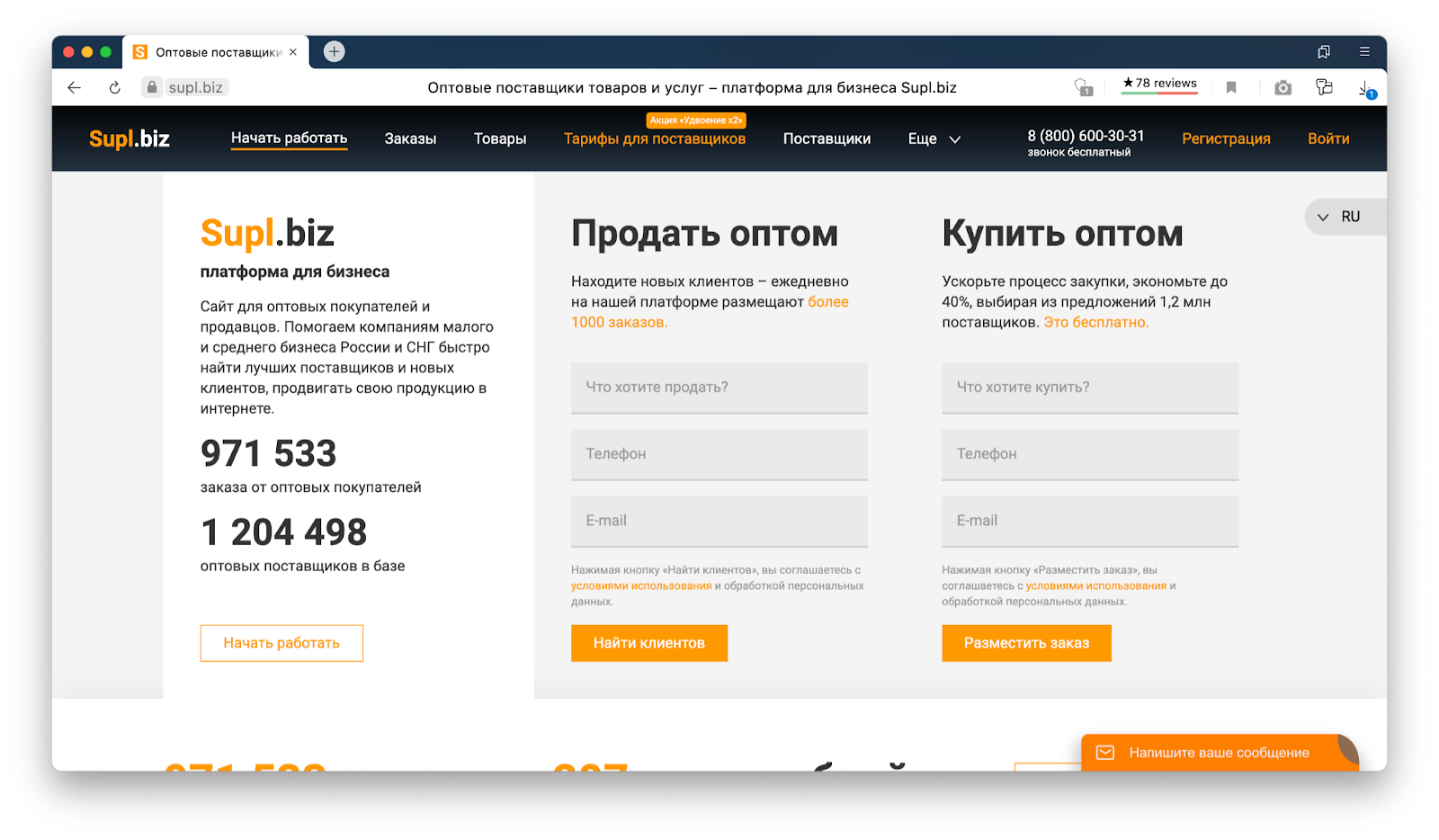 Как начать продажи. Ввести телефон и электронную почту в блоке «Продать оптом» на главной странице, нажать «Найти клиентов».