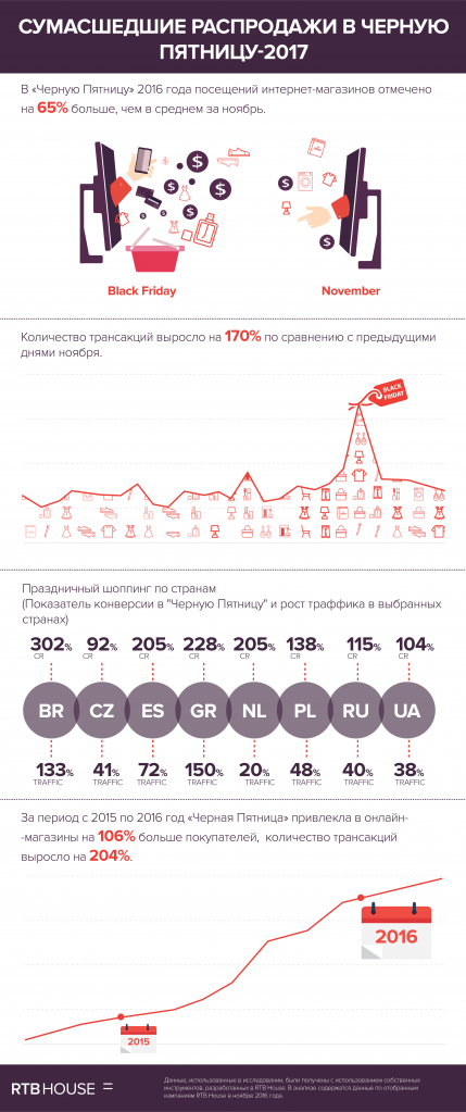 Согласно данным RTB House, накопленным за время работы с клиентами из различных сегментов рынка eCommerce, минимум что может ожидать интернет-магазин в этот день и за временной буфер в 2 – 3 дня ДО и ПОСЛЕ акции, это рост трафика.