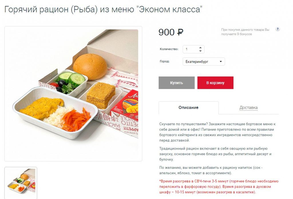 На сайте фирменного магазина "Уральских авиалиний" в специальном разделе доступны три горячих рациона эконом-класса на выбор. В столице наборы эконом-класса стоят от 550 до 600 рублей, а горячие рационы бизнеса - 1250-1750 рублей. В Екатеринбурге стоимость начинается от 700 рублей.