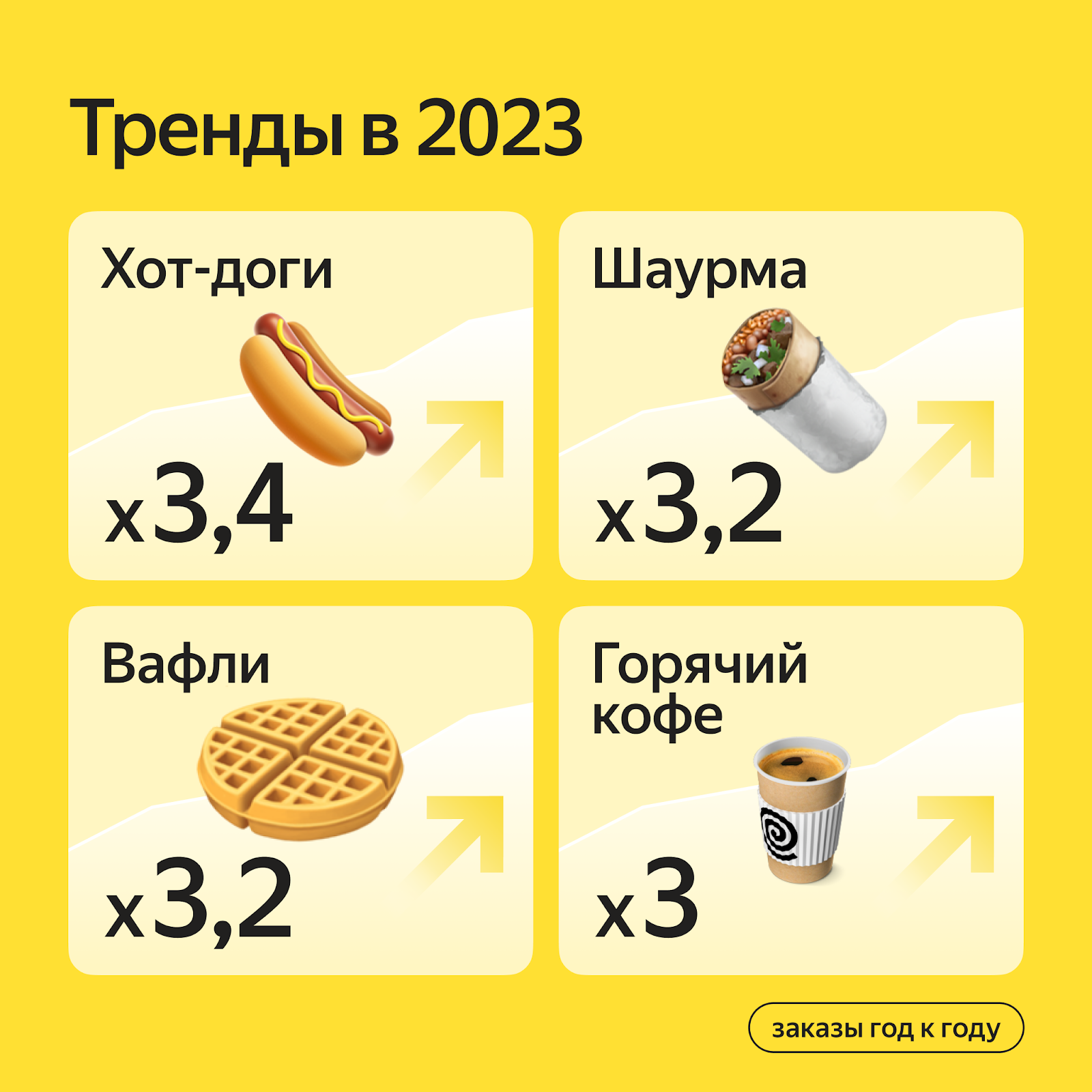 Ещё одним блюдом, на которое спрос сильно вырос за год, стали вафли — как сладкие, так и сытные. В 2023 году количество их заказов на сервисе увеличилось в 3,2 раза относительно 2022 года. Это можно объяснить в том числе растущей на сервисе популярностью завтраков: за последние 2 года число утренних заказов в Еде увеличилось на 40%.