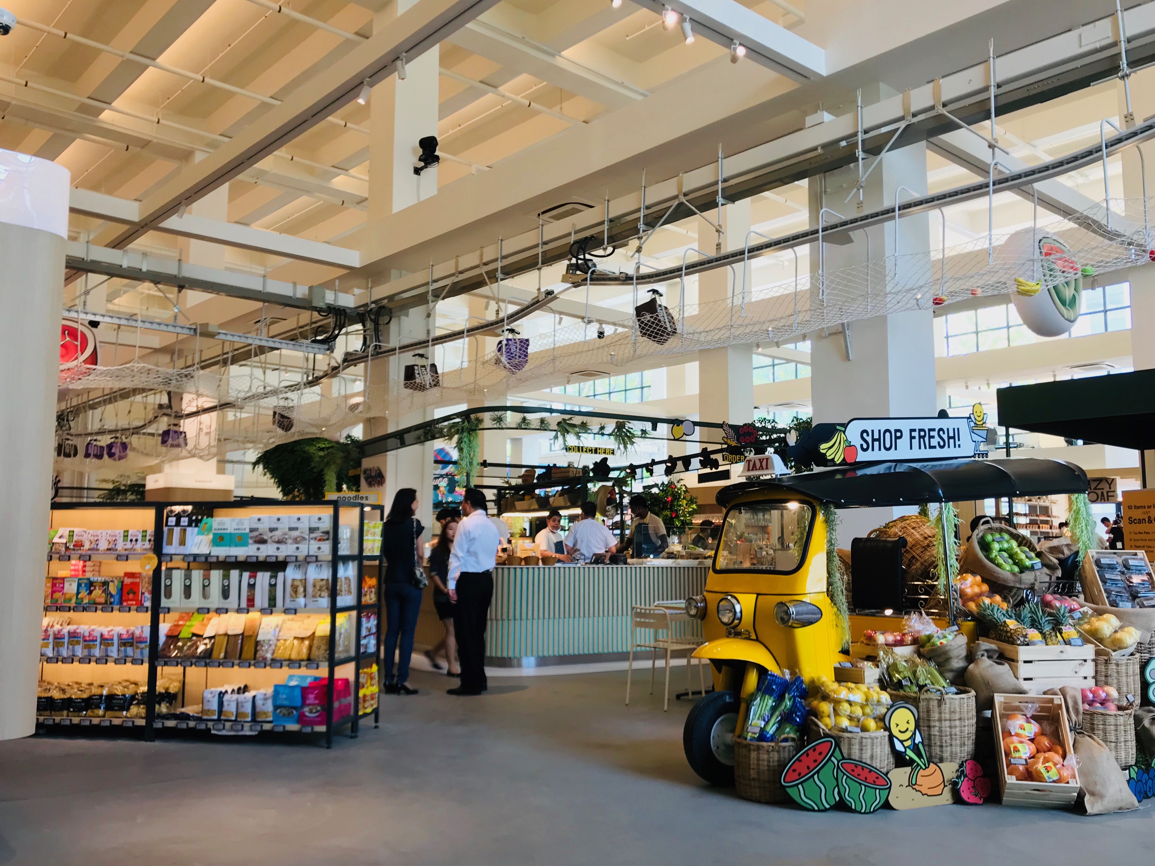 Магазин занимает площадь в два гектара и расположен в здании бывшего промышленного склада. Для того, чтоб войти в здание, нужно зарегистрироваться в специальном приложении Honestbee. Это помогает избежать и кражи товаров, говорят в компании.