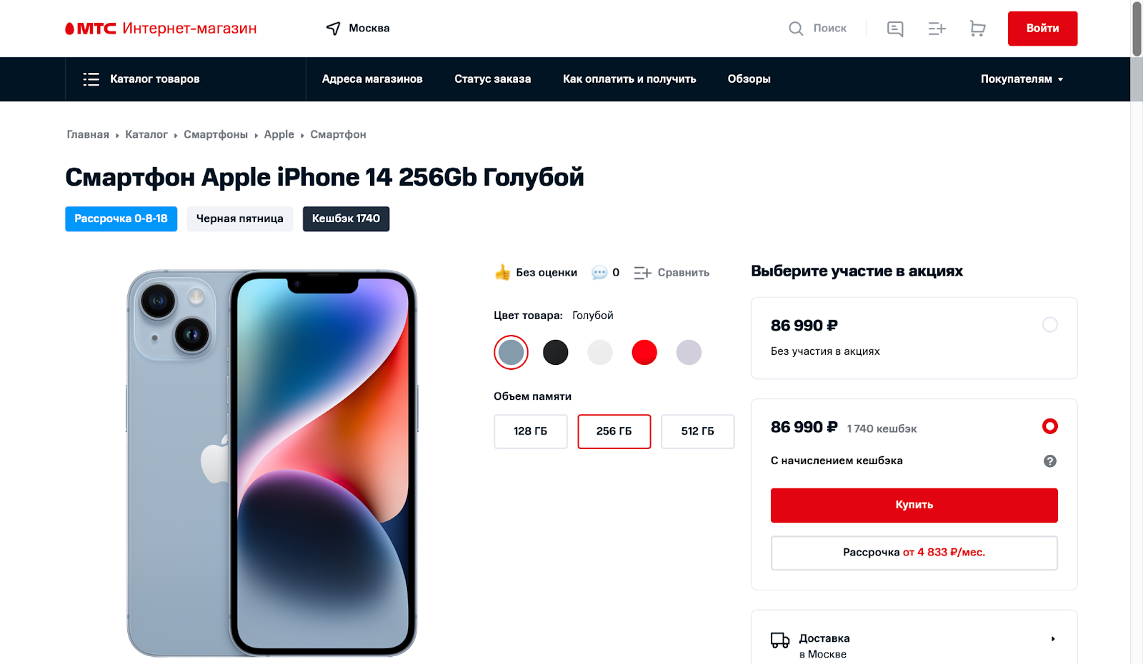 Во-вторых, цены на новые модели iPhone 14 заметно снизились. Если на старте продаж iPhone 14 на 256 ГБ можно было купить за 95 тысяч, то сейчас эта модель в среднем на 10 тысяч дешевле. У серых продавцов цены еще ниже: например, на Яндекс.Маркете ту же модель можно купить за 73 тысячи рублей.
