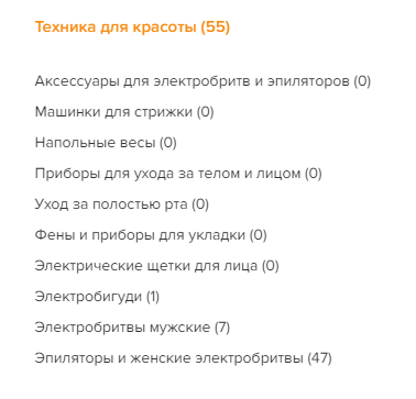 Кроме того, на данный момент часть категорий пусты (на рисунке: ассортимент раздела "Техника для красоты"), впрочем, как обещают владельцы площадки, он будет постепенно расширяться.