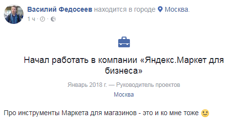 Директор по развитию Хобби Центр Василий Федосеев покинул компанию и теперь будет отвечать за инструменты для магазинов компании "Яндекс.Маркет".