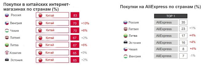 Чаще всего покупают в Китае, причем если в России кроме одежды чаще всего покупают мелкую бытовую технику и косметику, то в Китае - смартфоны и товары для детей. За последний год средний чек в интернет-магазине вырос до 6,41 тыс. руб.- это почти на 1 тыс. руб. больше, чем год назад.