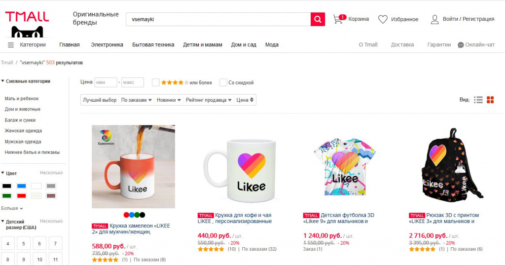 С 1 декабря vsemayki.ru официально представлены на Tmall. Как рассказал E-pepper.ru директор по онлайн-маркетингу компании Николай Екатеринчев, пока на площадке выставлены около 500 товаров. Однако потом число SKU вырастет.