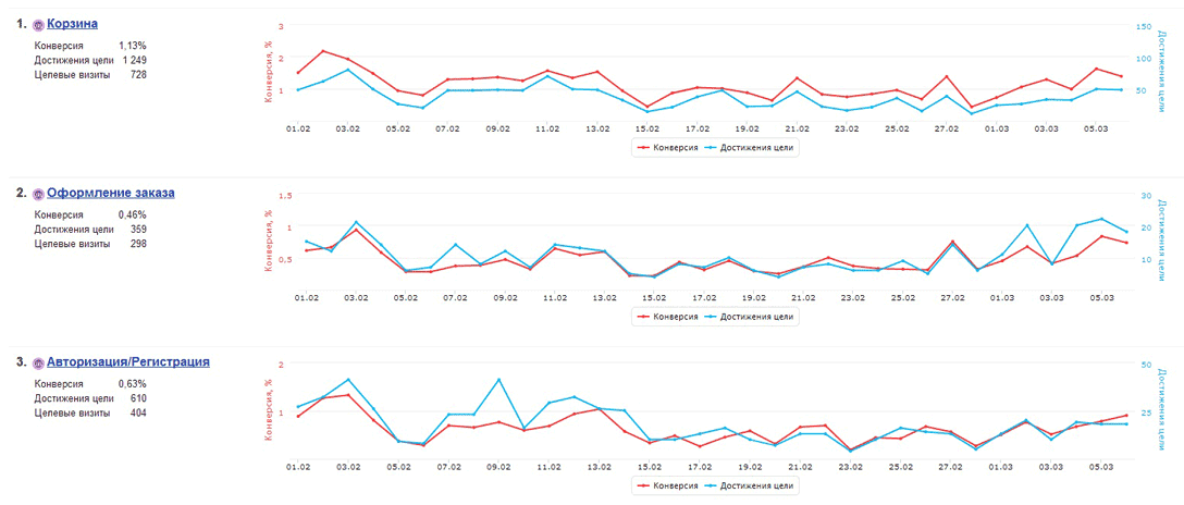 1. Создаем цели (если еще не созданы), некоторое время копим статистику