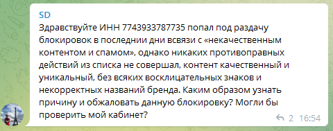 Продавцы массово обращались с вопросами в официальный чат маркетплейса, поясняя, что никаких правил они не нарушали. В ответах службы поддержки продавцов встречались заявления, что "бан окончательный и обжалованию не подлежит", а также отсылка к "новостям на сайте".