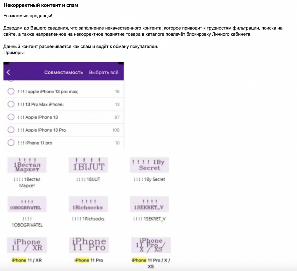 Как рассказали порталу E-pepper.ru в компании, "некачественным контентом", за который следует ждать бана со стороны площадки, является тот контент, который "приводит к трудностям фильтрации, поиска на сайте, а также направлен на некорректное поднятие товара в каталоге".