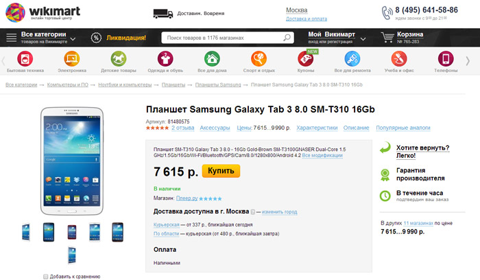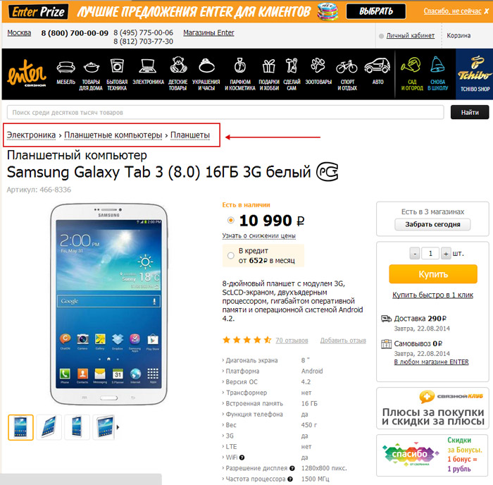 Рассматривая все тот же Планшетный компьютер Samsung Galaxy Tab 3, мы видим, что сам товар и категории, которые указаны в его хлебных крошках размещены на отдельном поддомене.