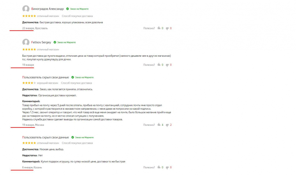 Но это не всё. "Если посмотреть чуть детальнее отзывы магазина Беру.ру, можно увидеть отзывы аж за январь - когда магазина физически не было на Маркете", - говорит Денисов.
