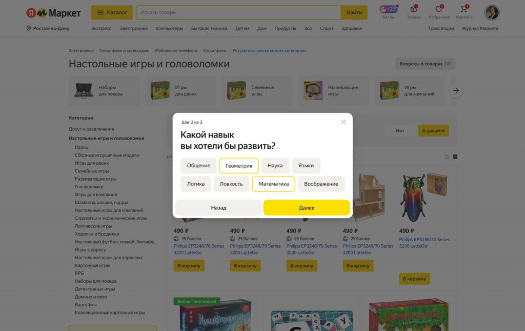 Помимо спортивных тренажёров (беговых дорожек, велотренажёров, эллиптических тренажёров, гребных тренажёров), подборщик на "Яндекс.Маркете" уже доступен для настольных игр, детских подарков, а также кремов и сывороток для лица. В будущем будут добавлены другие категории товаров.