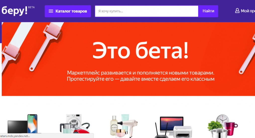 Интересно, что среди рекламных баннеров, которые размещены на первой странице сайта, появилась новая картинка, на которой крупно написано, что данный магазин работает лишь в бета-версии.
