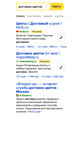 Блок появится и в Директе, но лишь для 2,7% запросов. Специальное увеличение этого процента или снижение планки качества, которая определяет порог входа в блок, не планируется. Число объявлений над результатами поиска продолжит зависеть от их релевантности.