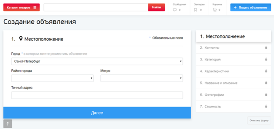 Размещая предложение о продаже, владелец товара заполняет название, фото, краткое описание и цену, указывает свое местоположение.