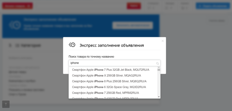 Быстро создать и опубликовать объявление поможет функция экспресс-заполнения: характеристики автоматически загрузятся из базы товаров, ранее продававшихся в "Юлмарте", и после модерации попадут в каталог магазина.