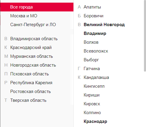 На сайте приводится очень ограниченный список из 10 доступных регионов.
