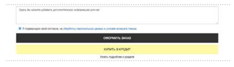 Дополнительно может быть размещено пользовательское соглашение, если до покупки товара пользователь может пройти регистрацию на сайте и использовать личный кабинет или закрытую часть сайта.