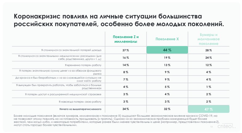 Экономика социального дистанцирования сформировала новые потребительские привычки. Так, онлайн-потребление перестало быть прерогативой миллениалов и поколения Z. В интернет-магазины пришло поколение “молчаливых” и людей в возрасте от 44 до 55 лет. 29% и 39% потребителей этого возраста во время пандемии открыли для себя хотя бы один онлайн-магазин.