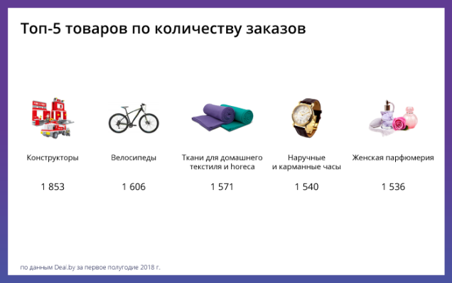 Самые популярные товары полугодия - детские конструкторы, велосипеды, ткани, часы и женская парфюмерия.
