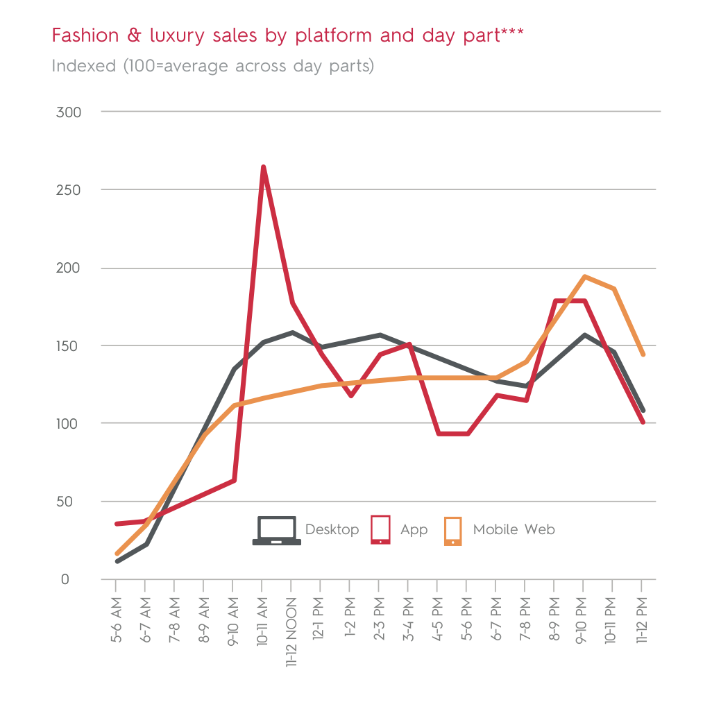 Согласно отчету, 33% от всех мировых "модных" онлайн-продаж уже совершается с помощью мобильных гаджетов. 43% покупателей используют различные устройства: компьютер, планшет, смартфон и любую удобную платформу (приложение или сайт).
