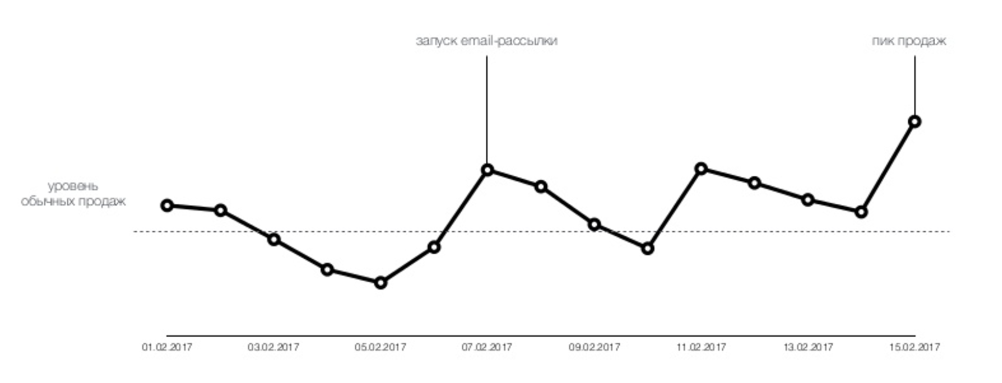 Руководитель интернет-проектов мебельной компании «Фран» Алексей Абакумов: 14 и 15 февраля проводили акцию на «День Влюбленных», со скидками на разные группы товаров до 75%. В день самого праздника количество сеансов увеличеслось незначительно, на 6% к средним показателям февраля. Конверсия даже немного снизилась. Но, в последний день акции, 15 февраля, пользователи, определившись с выбором, оформили заказы, и прирост по продажам в этот день составил +42% по сравнению со средними дневными продажами февраля.