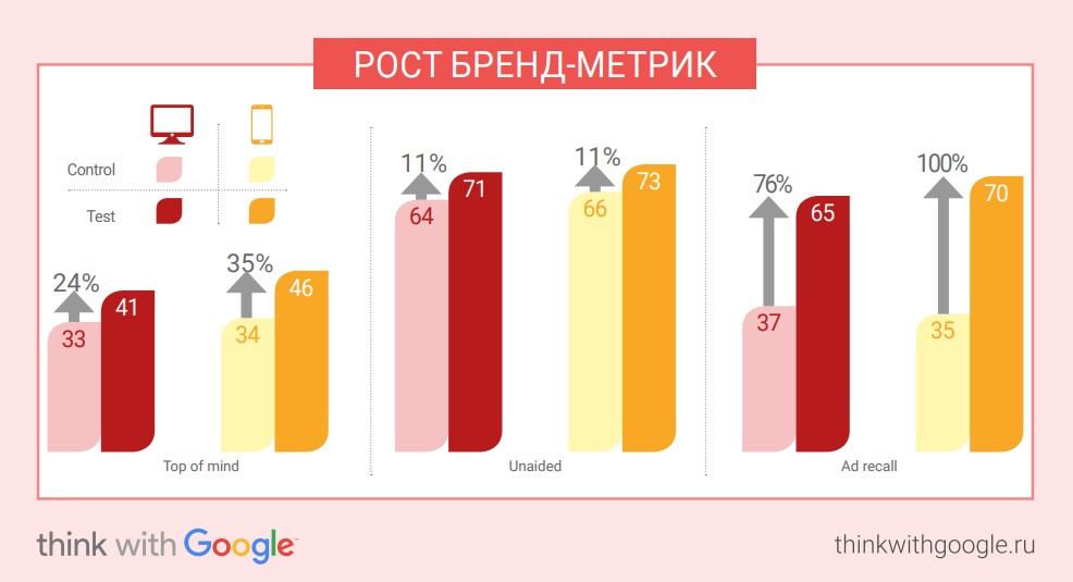 Интересно, что объявления сработали еще лучше на смартфонах, где рост показателя узнаваемости составил 35%. При этом узнаваемость бренда без подсказки (unaided awareness) благодаря рекламе выросла на 11%.