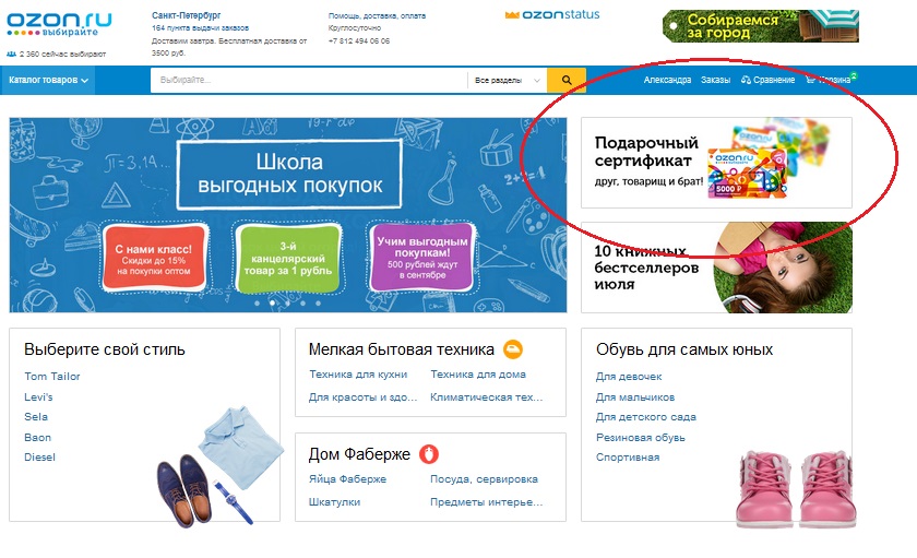 Удачнее всего электронные подарочные карты размещены у «Озона» и «Л'ЭТУАЛЬ».