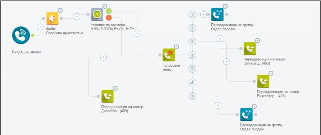 После того, как вы выбрали номер и добавили сотрудников в систему, приступайте к созданию логики обработки входящих звонков.