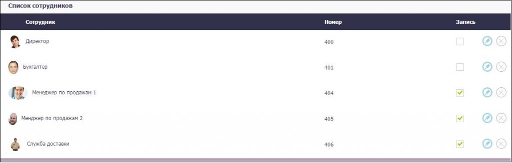 Для того, что бы оценить качество консультации, прослушать проблемные диалоги или восстановить в памяти диалог с клиентом, используйте запись звонков. Она выстраивается индивидуально, для каждого из сотрудников, таким образом, Вы можете прослушивать только интересующие вас диалоги.