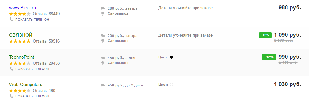 Интересно, что этот же товар можно найти в "Связном". За 1 090 рублей. Правда в "Связном" на товар работает скидка лишь в 8%, без дисконта он дешевле, чем у конкурентов.