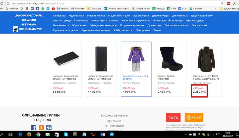 Впрочем, как обнаружил коммерческий директор в JetMark, сооснователь группы "Киберпонедельник по-русски" Борис Базанов, "Юлмарт" не смог удержаться в "отличниках" этой распродажи. Борис нашел разные цены на одну и ту же вещь от магазина на его сайте и площадке "Киберпонедельника".