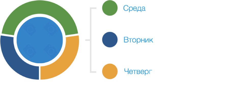 Напомним, это статистика по всей географии РФ. Конечно, в каждом городе картина может быть немного другая, но какой-то причине, начиная с осени среда немного сдает позиции и пропадает из рейтинга ТОП3, за исключением ноября 2016го.