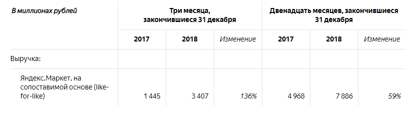 Выручка "Яндекс.Маркета" выросла на 59% - с 4,9 млрд рублей в 2017 году до 7,9 млрд рублей в 2018 году.