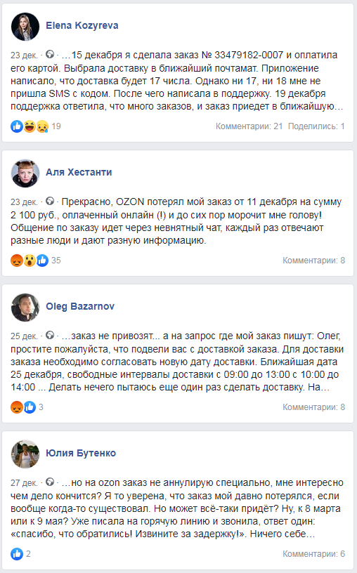 В социальных сетях пользователи жалуются на Ozon, который неоднократно переносит дату доставки заказа в мобильном приложении и не укладывается в изначально обозначенные сроки. В пресс-службе Ozon опровергают массовые задержки, допустив, что некоторые заказы "порой опаздывают".